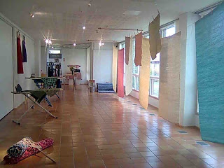 Näyttelyn elämyspolku päättyy valoisaan pyykkitupaan.